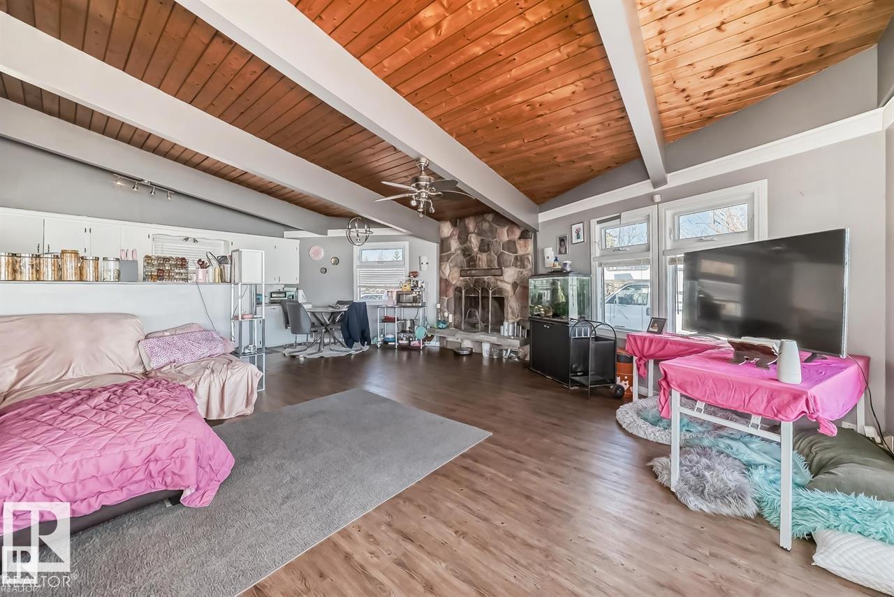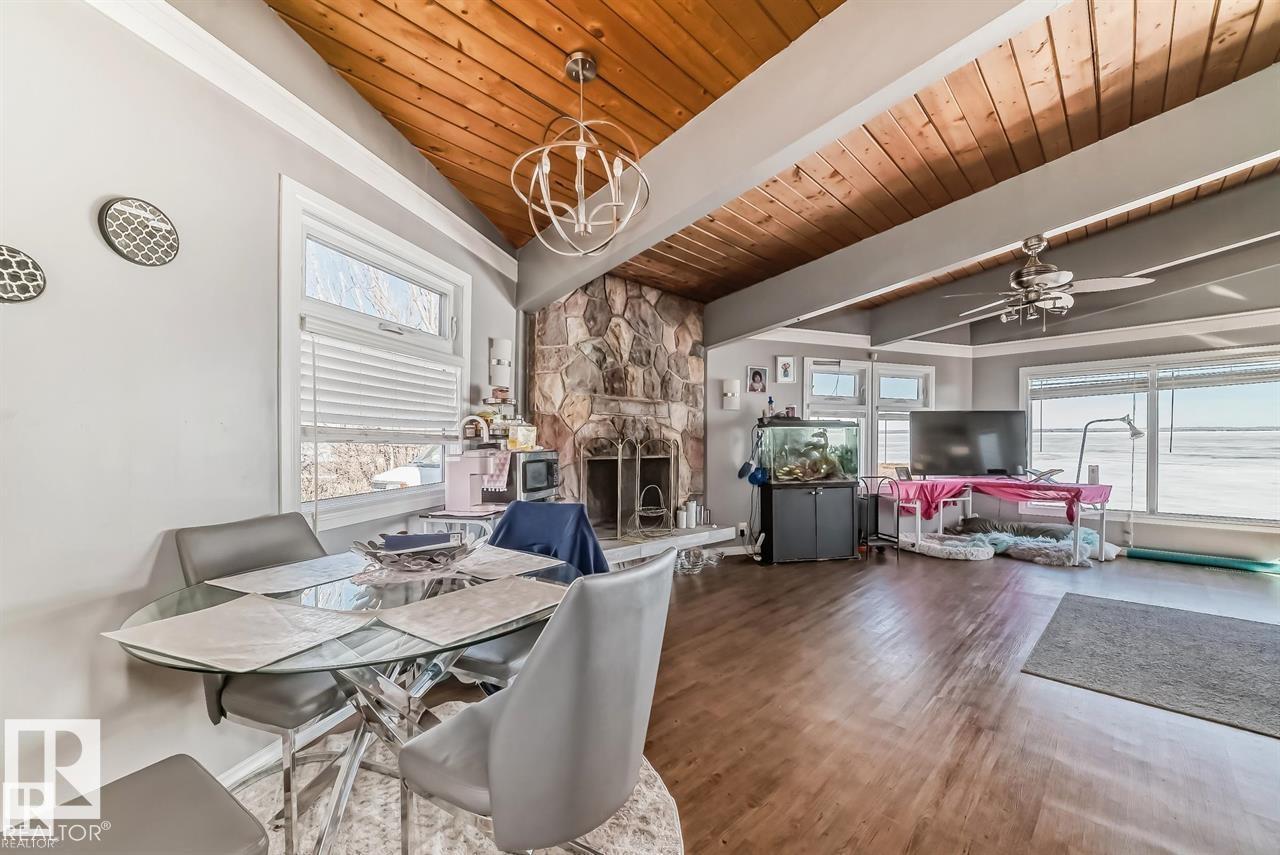 UPGRADEDED CEDAR VAULTED CEILING 1200 SQ/Ft 2 BEDROOM BUNGALOW YOU CAN ENJOY YEAR ROUND! AMAZING WATERFRONT VIEWS. OPEN CONCEPT LIVING ROOM WITH AN AMAZING STONE WALL WOOD BURNING FIREPLACE, DINING ROOM, WITH PATIO DOORS TO A NEWER DECK. LAMINATE FLOORING THROUGH OUT. 4 PCE BATHROOM WITH JACUZZI TUB! FENCED YARD, WITH LARGE STORAGE SHED, AND PLENTY OF PARKING ROOM TO PARK AN RV. UPGRADES INCLUDE NEW WINDOWS, NEW SIDING, NEW METAL ROOF, AND NEW BATHROOM. NEW HOT WATER SYSTEM. LOCATED AT THE VERY END OF THE QUIET COMMUNITY OF VAL QUENTIN, OFF THE SHORES OF LAC STE ANNE, AND DIRECTLY BESIDE IS MUNICIPAL RESERVE FOR ADDED PRIVACY. THE DOCK IS INCLUDED. AMAZING SUNSETS AND BACK YARD FIRE PITS AWAITS AT YOUR HOME AT THE LAKE! GOLF NEARBY, SCHOOL IS SUPER CLOSE TO GAS STATION, GROCERY STORE, LIBRARY DRUG STORE, BANK, PUB AND MUCH MORE! 40 MINUTES TO WEST EDMONTON, CLOSER TO STONY PLAIN AND SPRUCE GROVE AND SUPER CLOSE TO ONOWAY. YOU WILL LOVE THE SANDY BEACHES AT ALBERTA BEACH!! (id:47825)